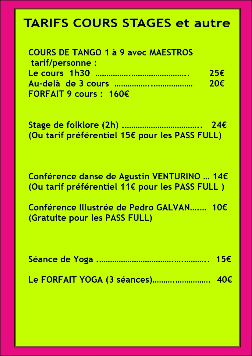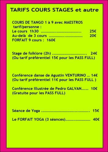 TARIFS 2026 / LES SOIREES ET LES STAGES
